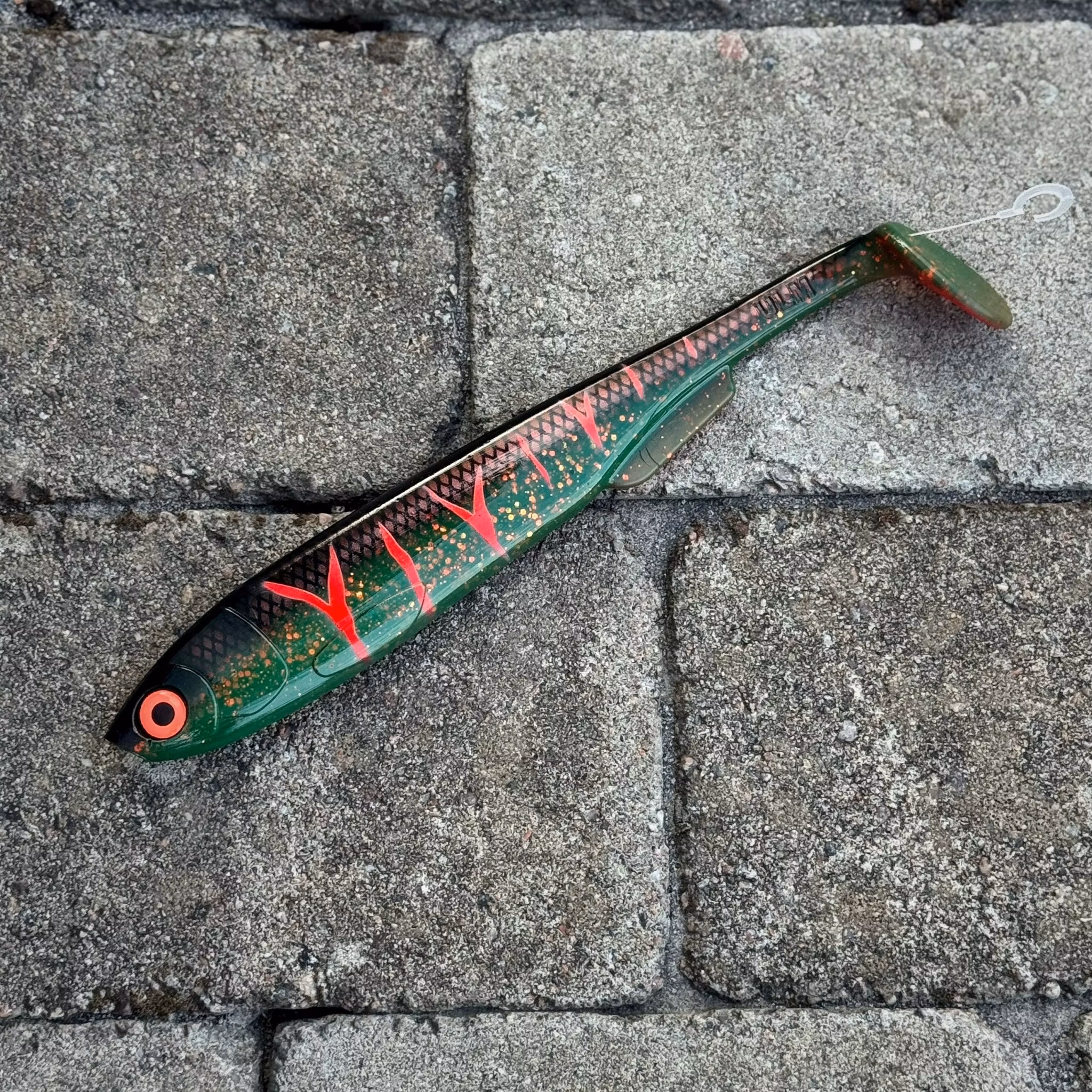 Ulm Lures Gigashad 27cm är en stolt medlem och det näst största betet i Gigashad-familjen, som erbjuder storlekar som är anpassade för gäddfiske från 20cm upp till 33cm. Med en vikt på 88g är Gigashad 27cm tillverkad för att erbjuda en lockande gungande rörelse som är helt oemotståndlig för stora gäddor.