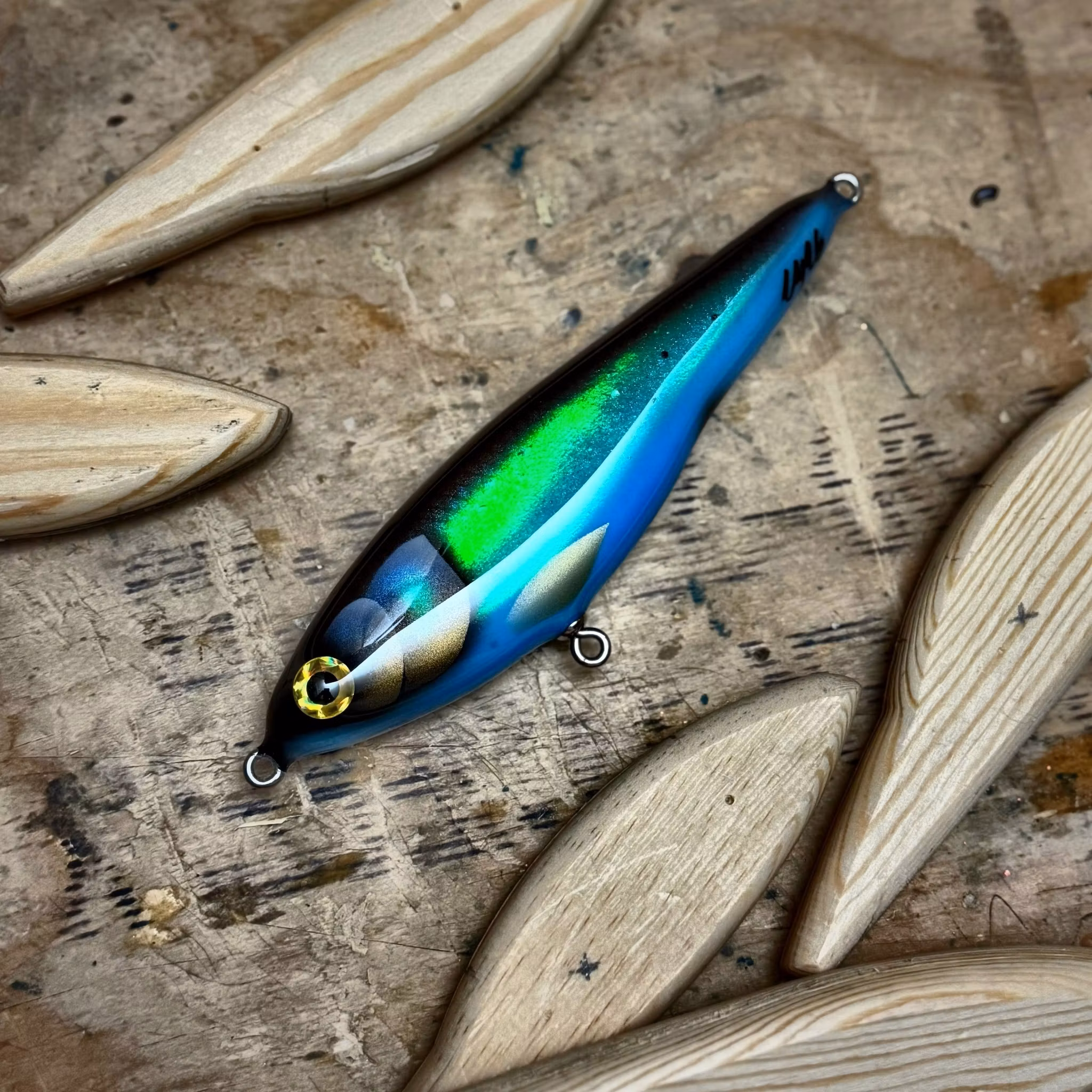 Betet har det mesta som kan krävas av ett handgjort bete; handbyggd rasselkammare och många lager lack. Samtliga Gigajerk JR är handgjorda och handmålade i Norrköping, Sverige.